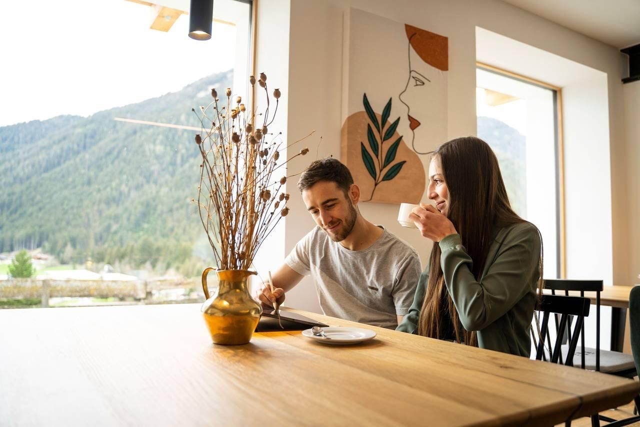 Con un supplemento, vi forniamo una cassetta della prima colazione con uova delle nostre galline, marmellata e sciroppo fatta in casa, tè con le erbe del nostro giardino e altri prodotti golosi della Val Casies e della Val Pusteria ad esempio latte, caffè, pane, pasticcini, yogurt, muesli, burro, ricotta, frullato e miele.