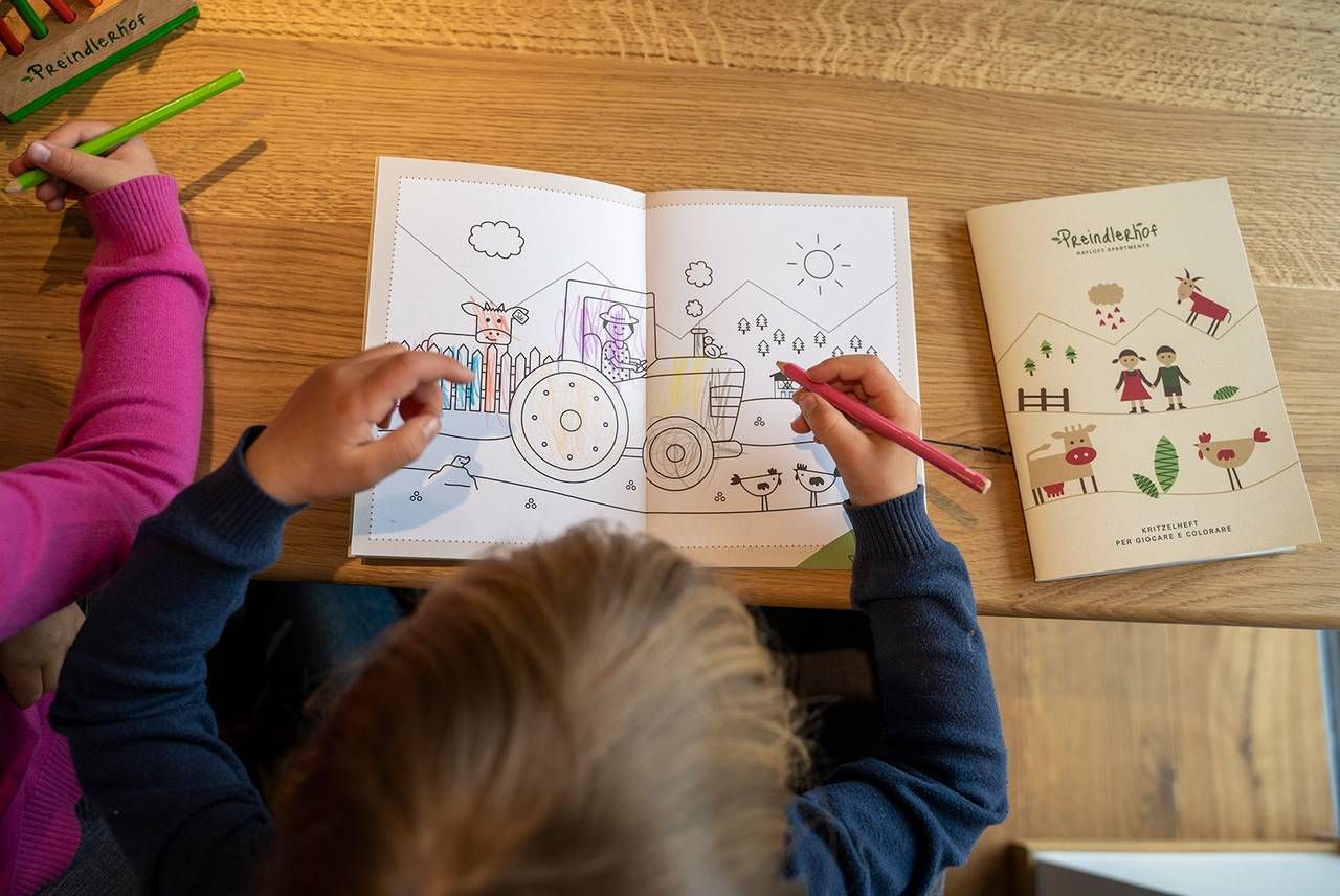 Al piano terra del fienile potete avvicinarvi ai nostri piccoli animali. Entrate e osservateli. È permesso accarezzarli, anzi, alcuni animali lo desiderano e lo apprezzano tanto. La particolarità molto speciale: a ogni appartamento è assegnato un piccolo pollaio. Ogni mattina potete andare a vedere se la “vostra gallina” ha fatto l’uova!